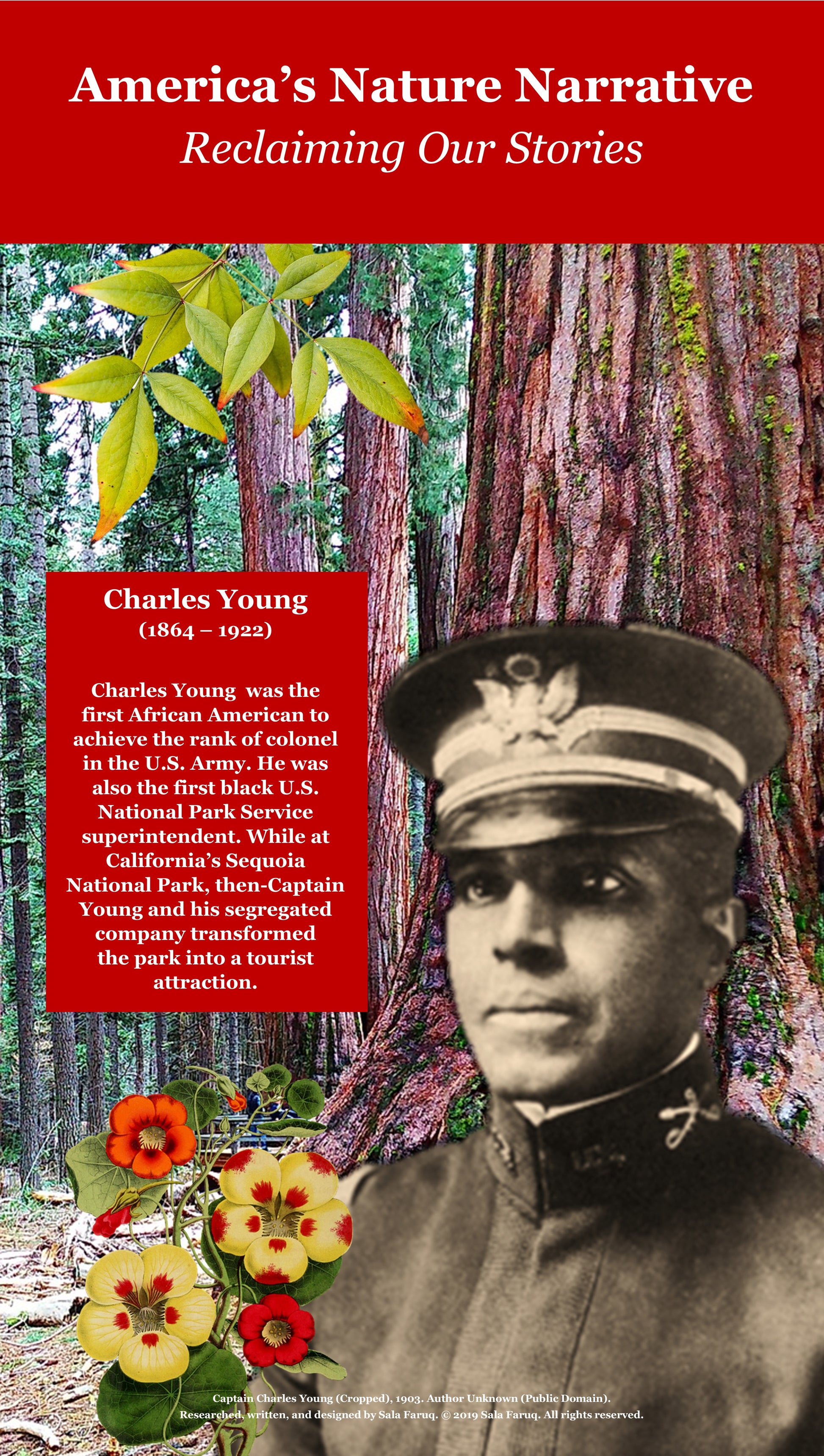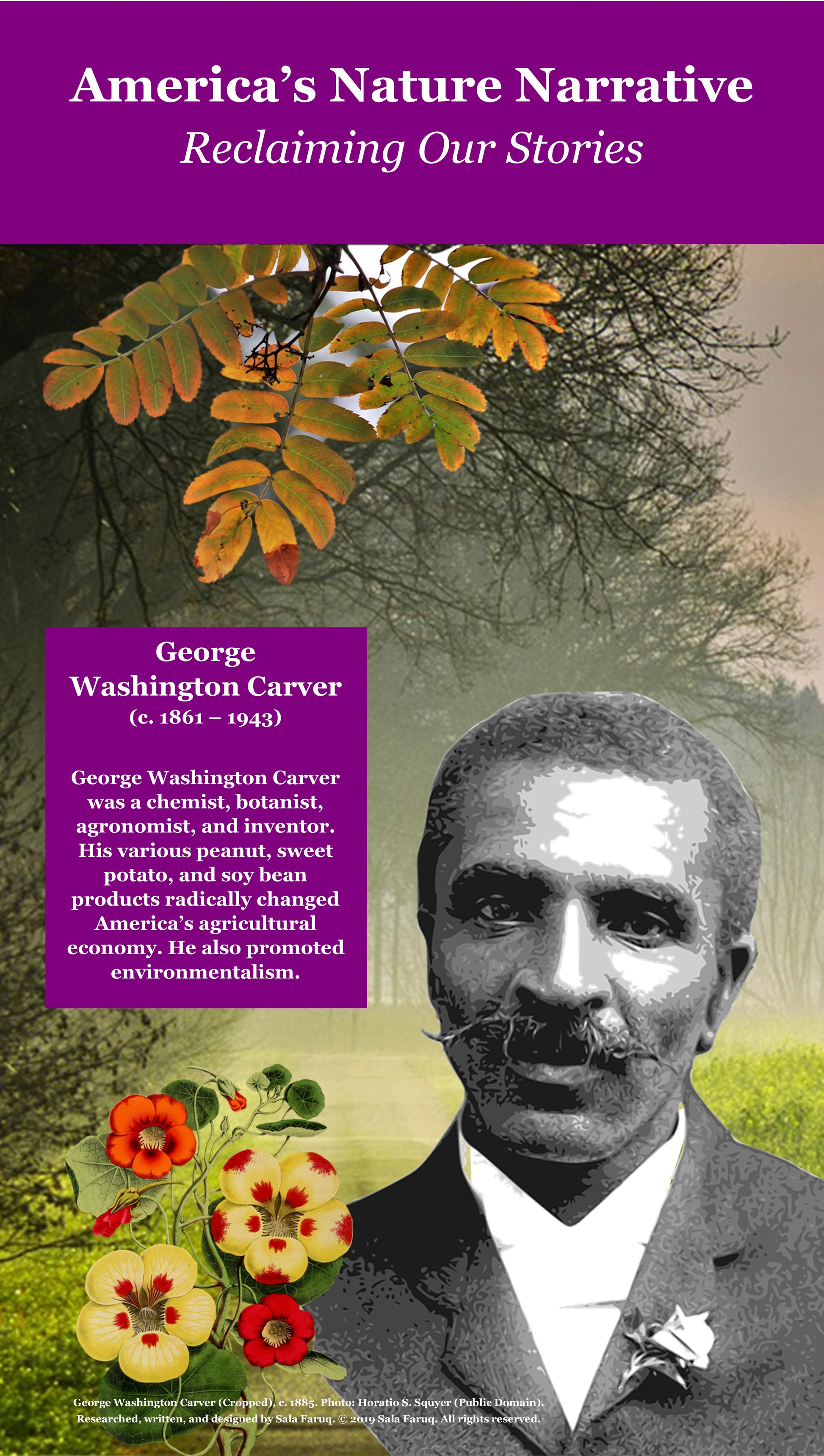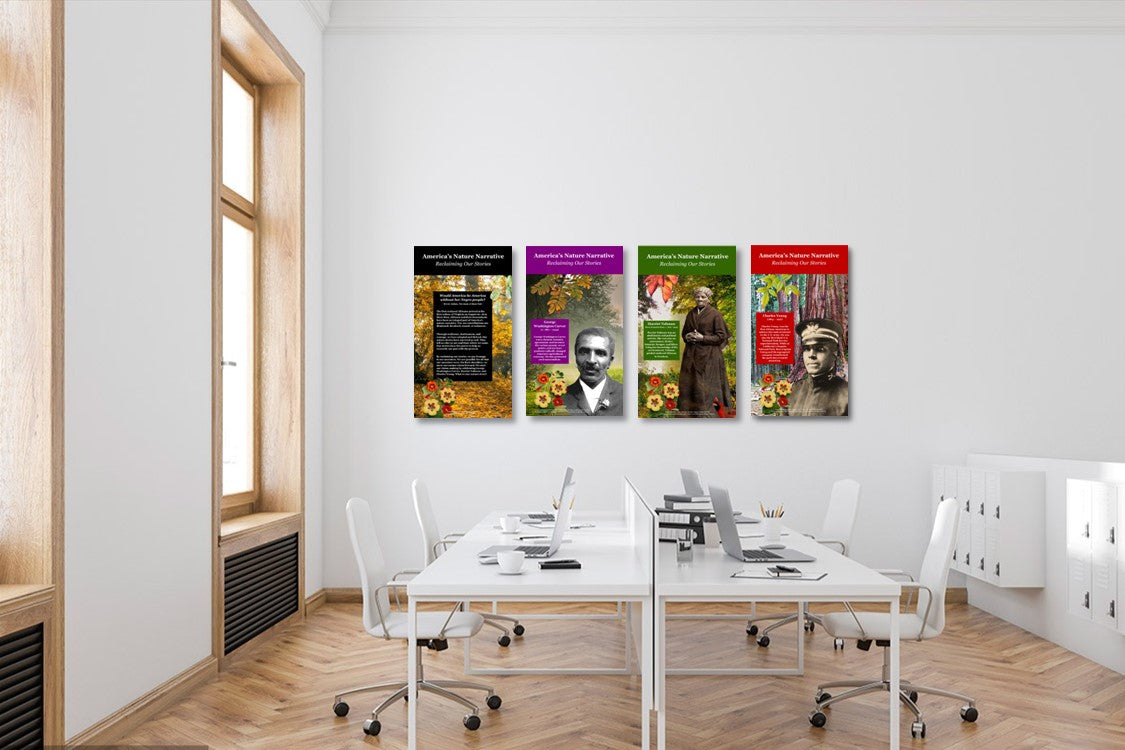 This mini-exhibit features an introduction poster and three early Black environmental pioneers posters- George Washington Carver, Harriet Tubman, and Charles Young.