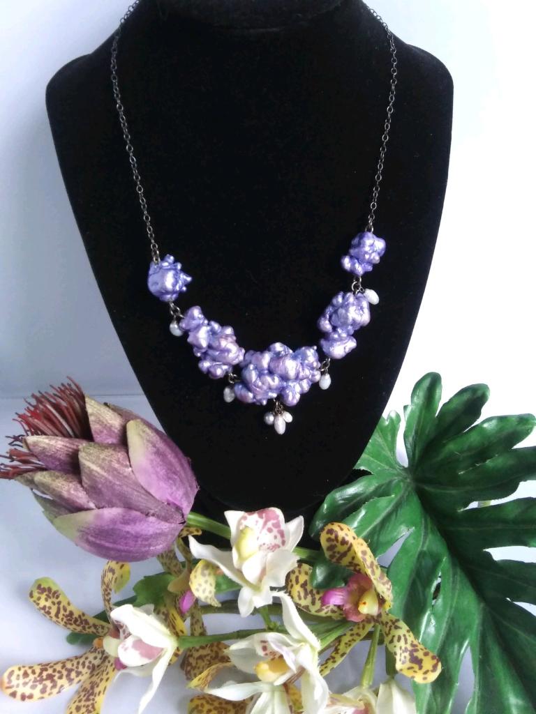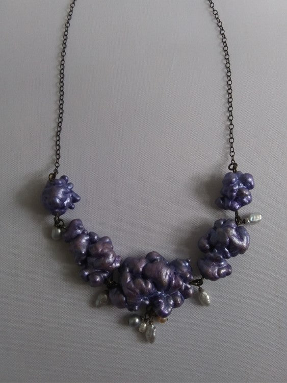 Media: Gourd and freshwater pearls, arlylic paint, water-based sealant, and metal chain