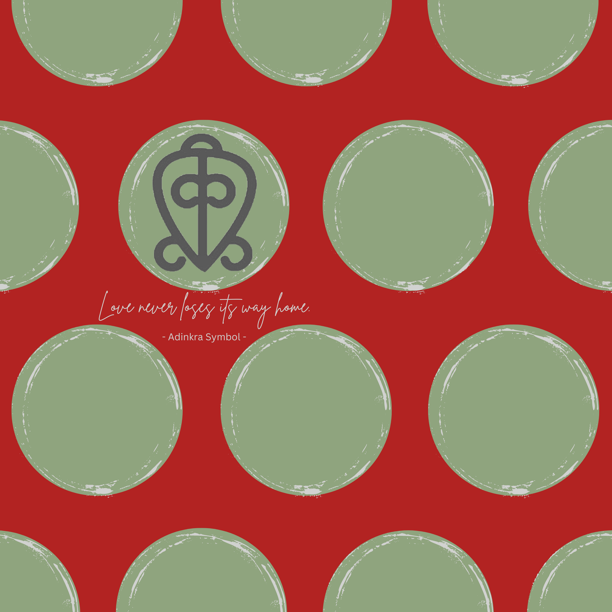 Sala Faruq's design embraces her love for polka dots and incorporates her African heritage into a vibrant pattern. She beautifully combines tradition and modernity by including one of her favorite Adinkra symbols, "Odo Nnyew Fie Kwan," which means "Love never loses its way home." The result is more than just a pattern; it's a story of connection and warmth that shines through every dot. This design celebrates cultural pride and reminds us that love is a constant guiding light in our lives.